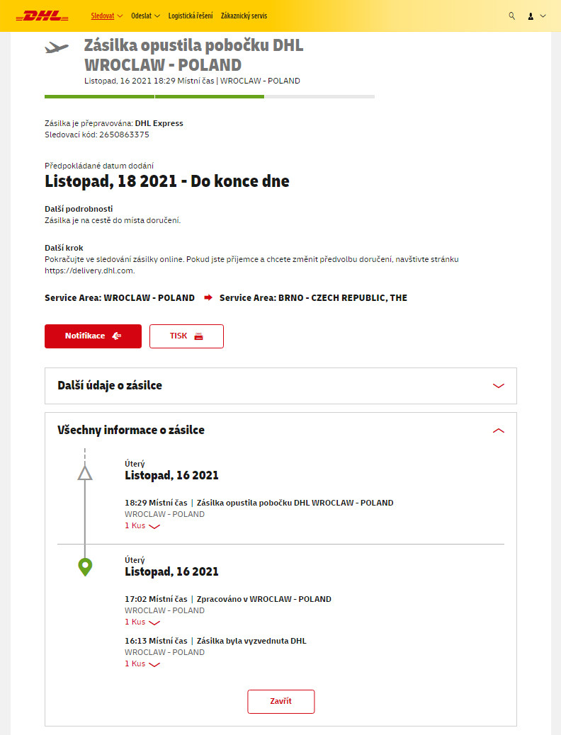 | Carrier : | DHL Express |