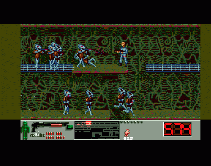 Story není podstatná, jde o válku lidí a jakýchsi vesmírných ještěrů. My hrajeme za lidi a naším úkolem je vykydlit nějakou vesmírnou loď, osvobodit semtam rukojmí, občas zdrhnout před nějakou autodestrukcí a podobně, prostě rutinní práce hráče her. To všechno v 2D labyrintu viděném z boku a v jednom nebo dvou hráčích, hrajících najednou.