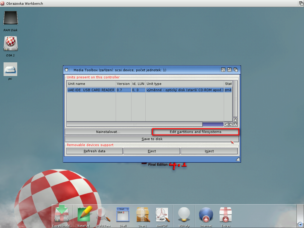 Správa disků v AmigaOS 4.1 probíhá v programu Media ToolBox. Ten se nachází v adresáři System.