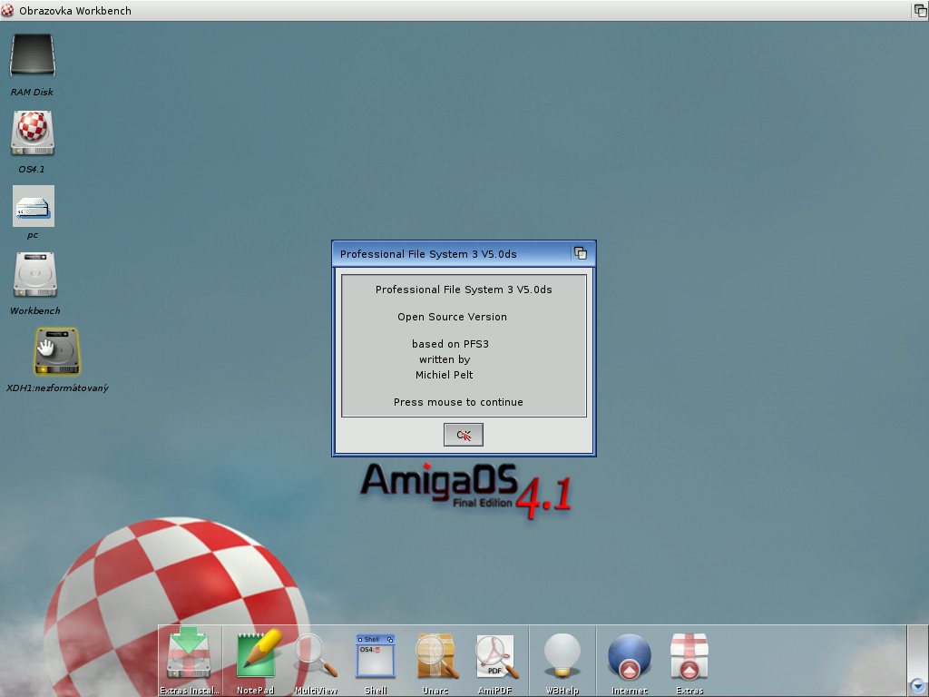 A na závěr jsme informováni o úspěšném formátu přes PDS3 v AmigaOS 4.1.