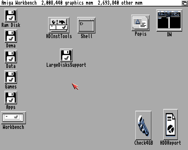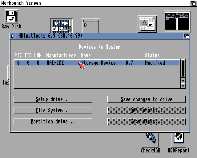 Amigu se zatajeným dechem zapínám a po chvíli napětí zjišťuji, že amiga z disku standardně najede. V amize provedu kontrolu přes Check4GB a HDDReport, přičemž vidím stejné výsledky jako v emulátoru. Zdá se, že je vše v pořádku a já můžu v Amize 1200 používat na IDE řadiči moderní SATA disk o kapacitě několika stovek GB.