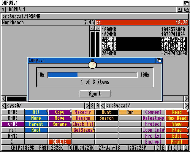 Konkrétně např. příkazem lzx -r -e -Qf -9 a CF0:ZalohaSystemu SYS:#? lze zkomprimovat veškerý obsah systémového disku do lzx souboru na cf kartu nebo jinam.