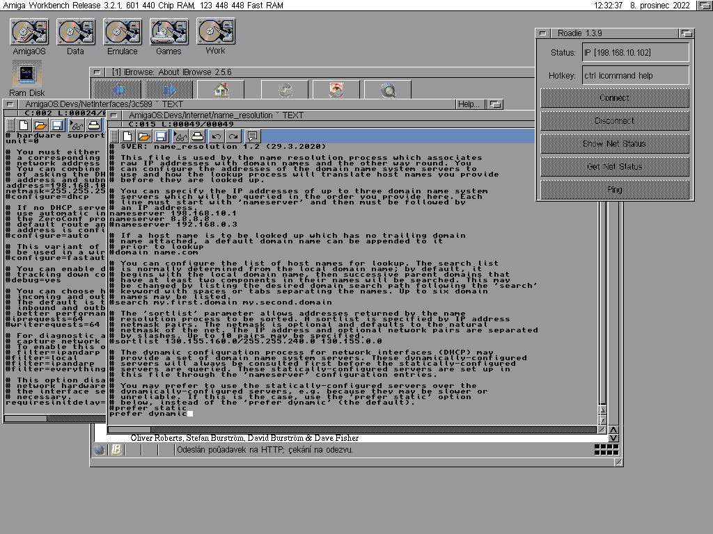 V dokumentaci jsem nenašel vůbec nic. Pokud to nastavím na DHCP, nefunguje nic.Amiga 1200, Micronik Mini-Tower, PiStorm32 Lite (Rasberry Pi 4B), FastATA 1200 MK-IV, Lyra 2, Indivision AGA MK3, ZIP 250MB, HP LaserJet 1100, interní HD mechanika (EXA), 3x extérní DD mechanika, LinkSys EC10T