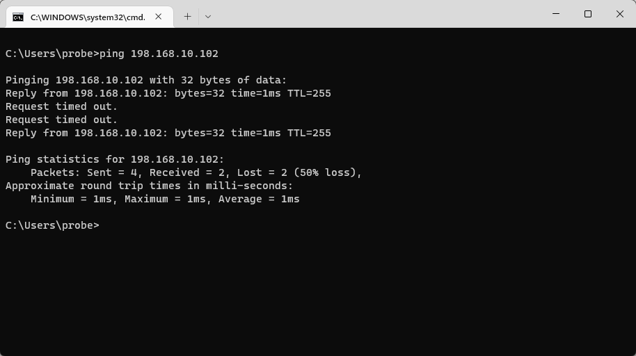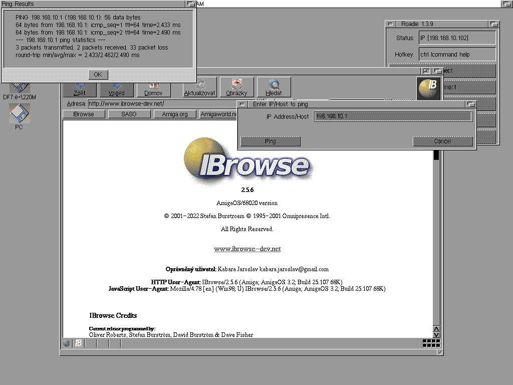 Ping zpět z PC na Amigu (198.168.10.102) háže pokaždé packet lost...