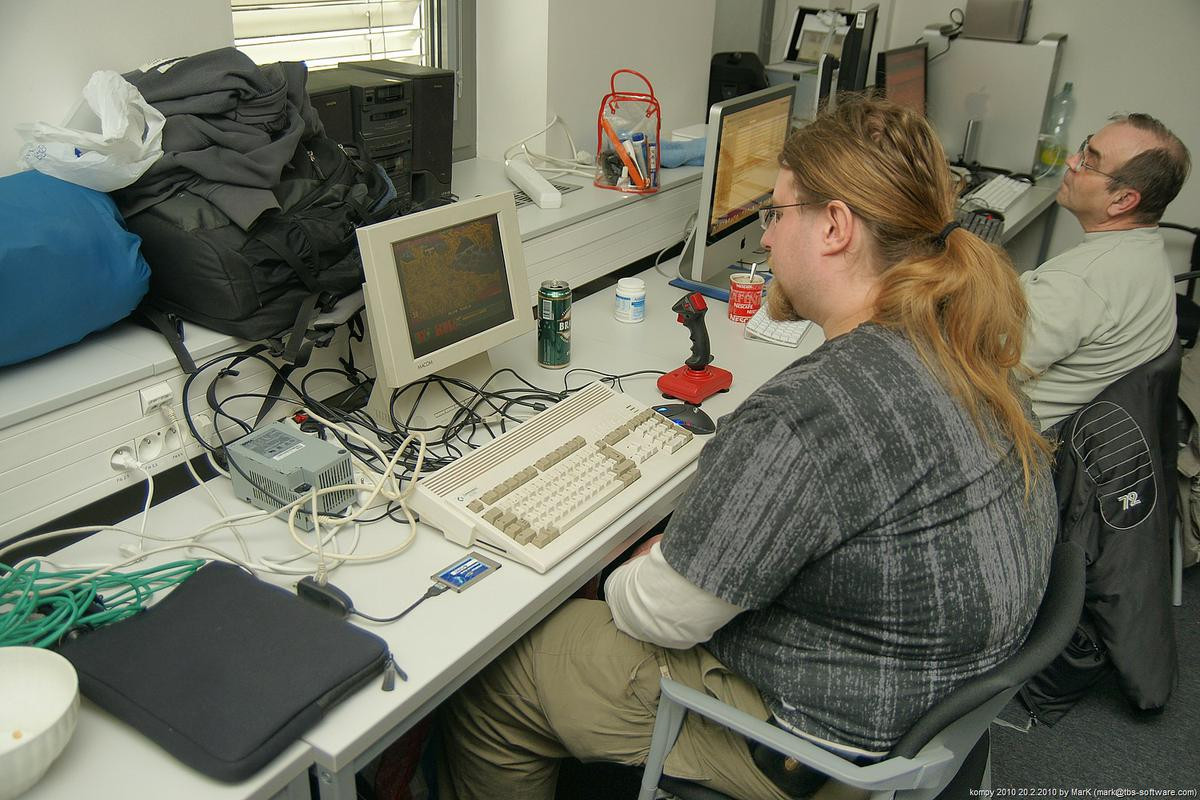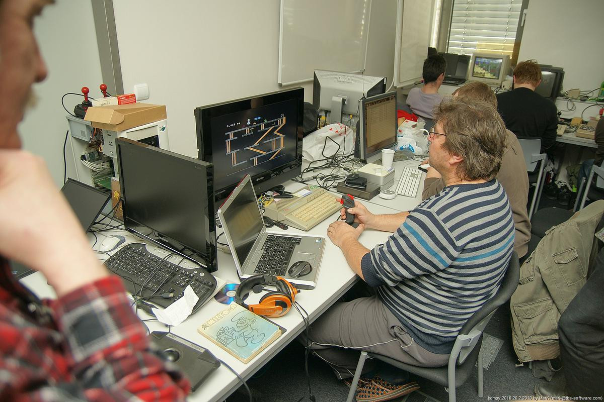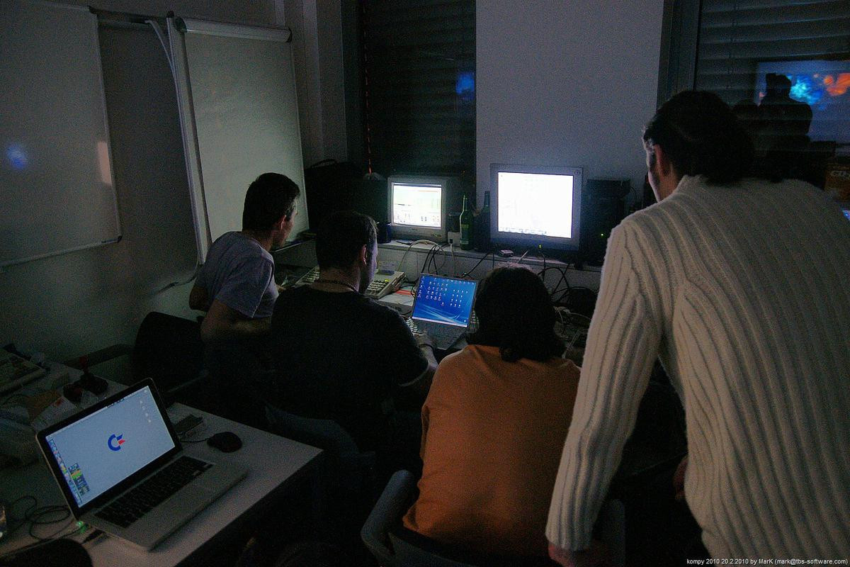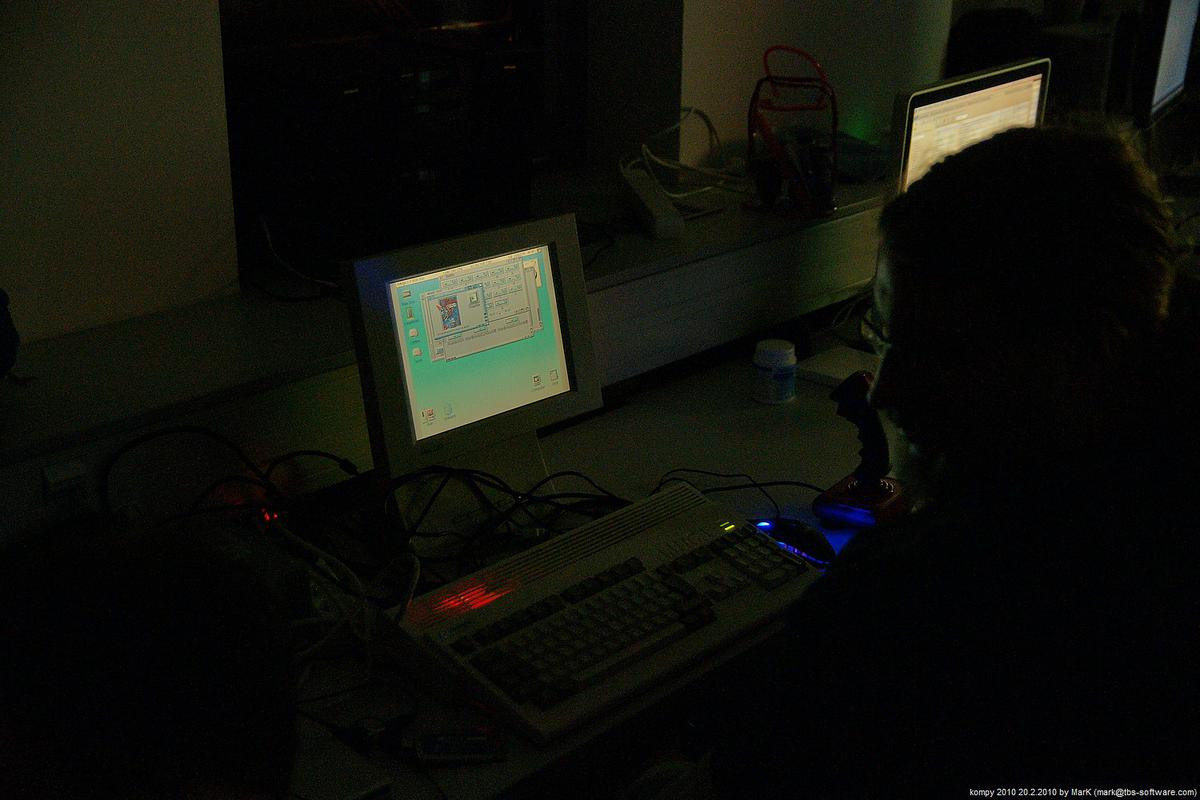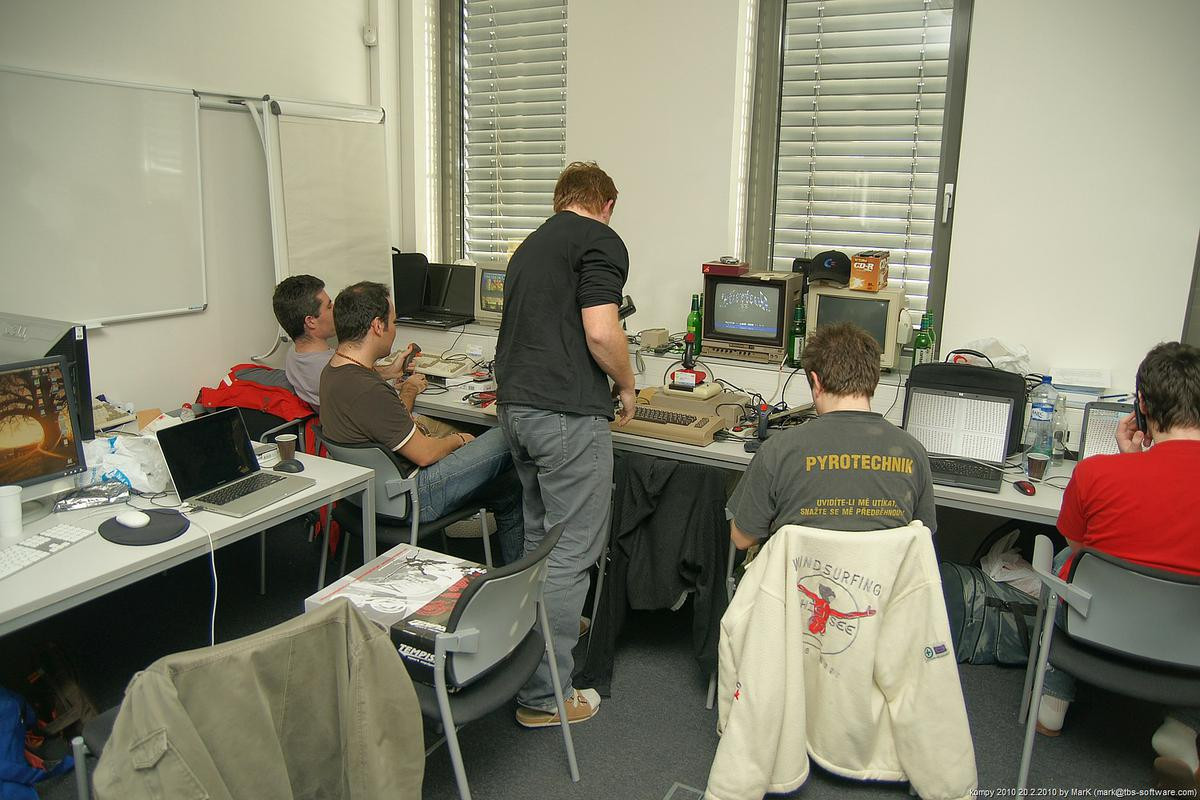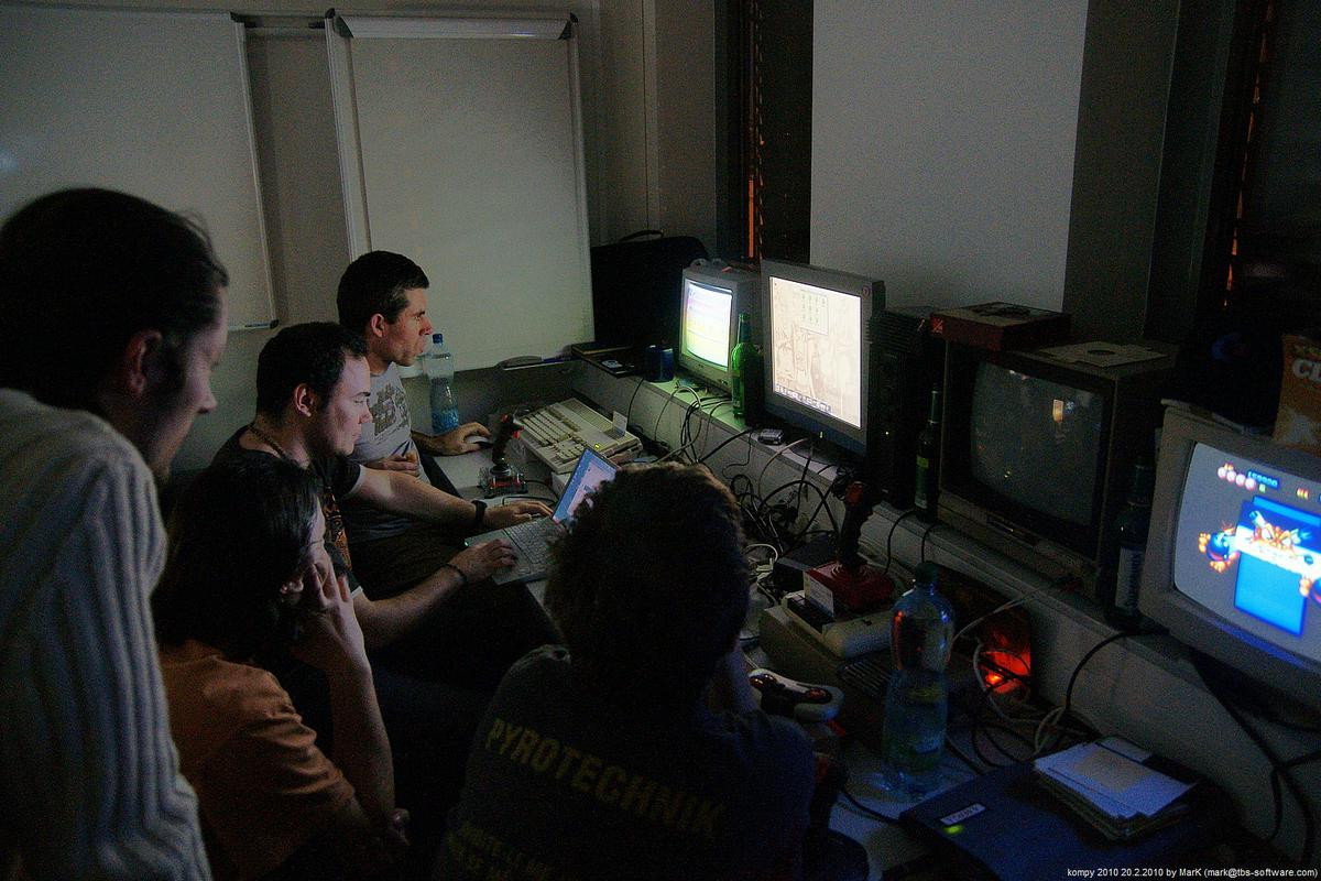 O víkendu proběhla na pražském Chodově nyní už dá se snad říci tradiční zimní akce s názvem Kompy. Je to setkání zaměřené implicitně na hraní her pro Amigu a MAME, ale i další platformy. Tentokrát se nás sešlo asi 30 plus minus pár návštěvníků a kromě Amig a emulovaných arcade automatů se hrálo také třeba na osmibitových Commodorech 64 a Atari 800XE. K dispozici byly dva projektory s plátnem a obří plasmová obrazovka.