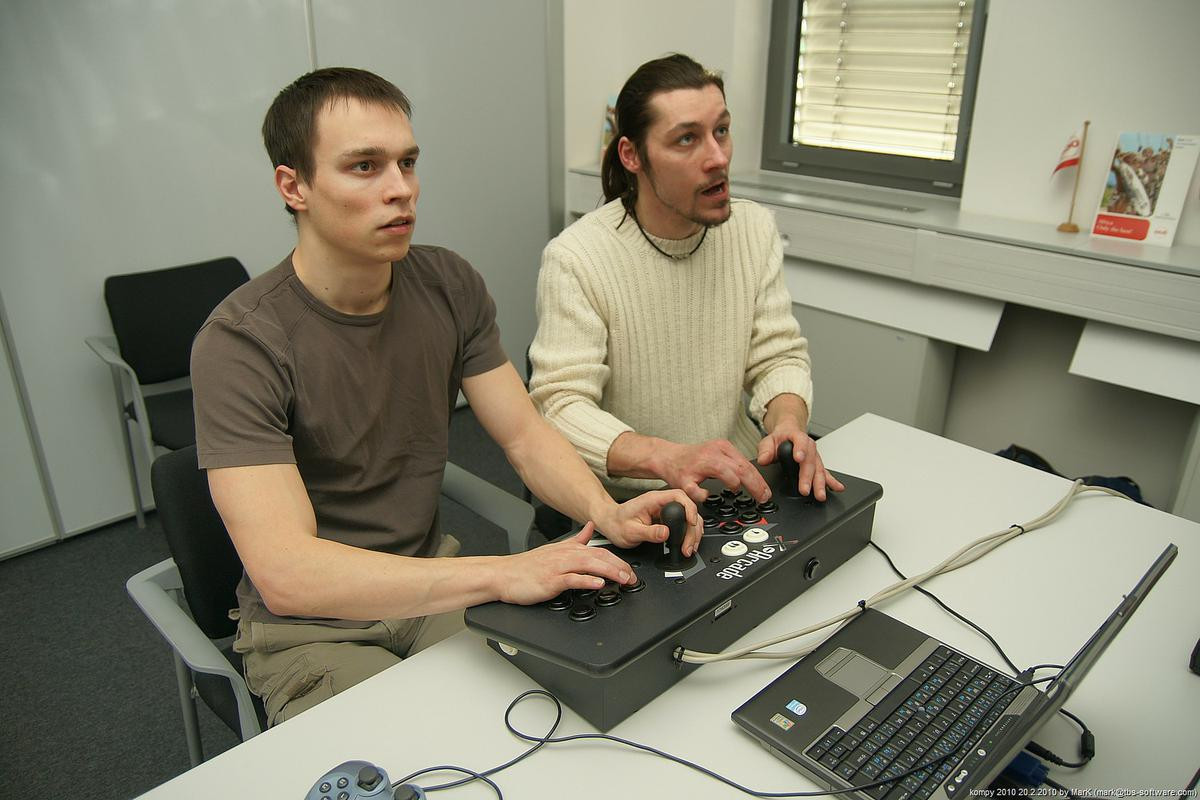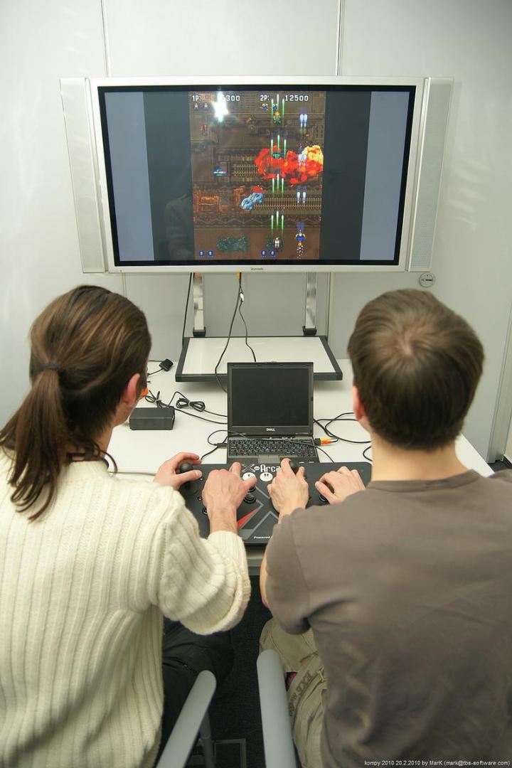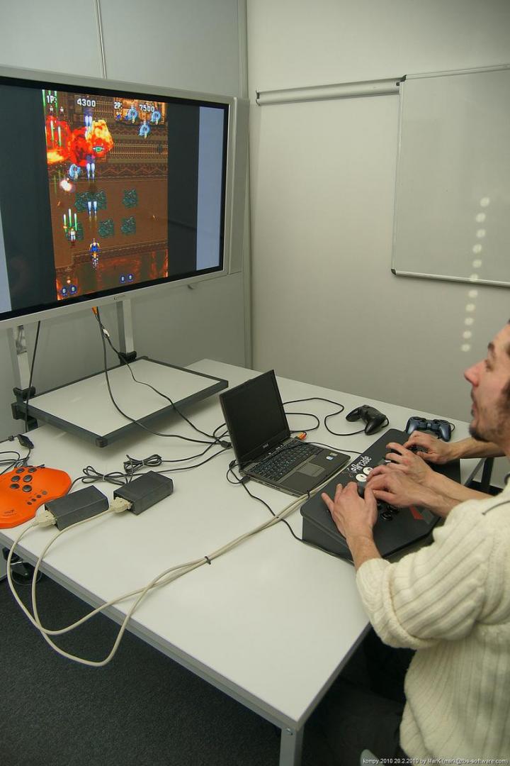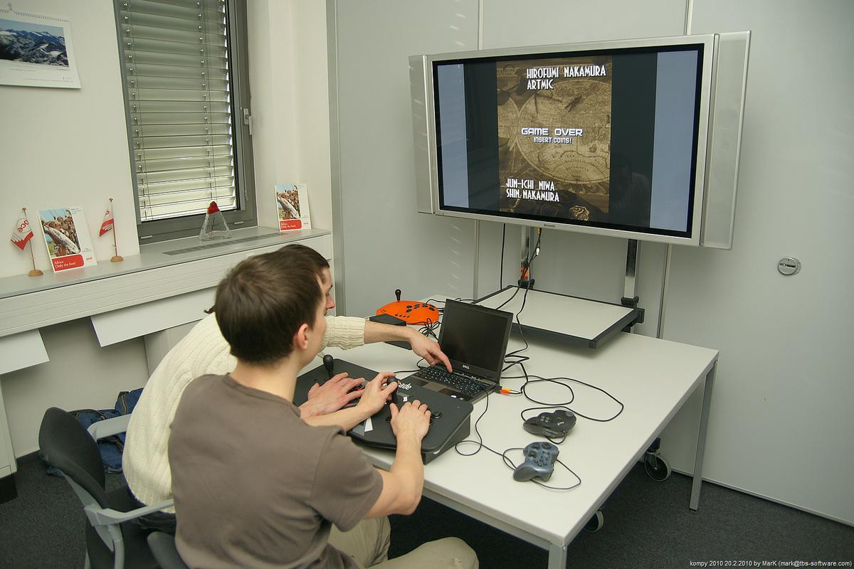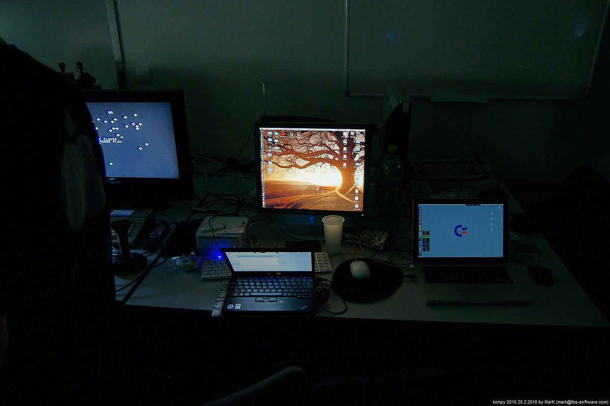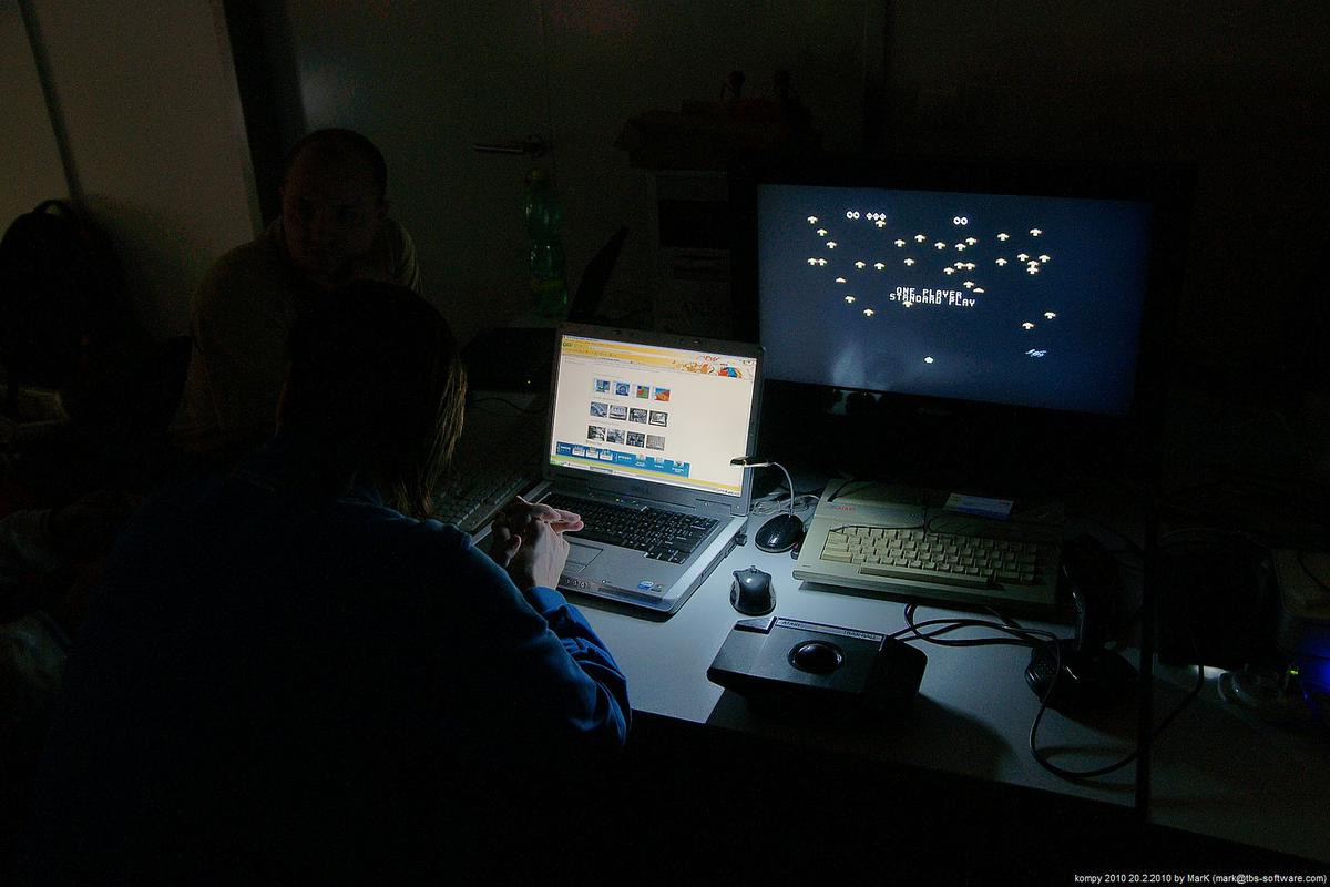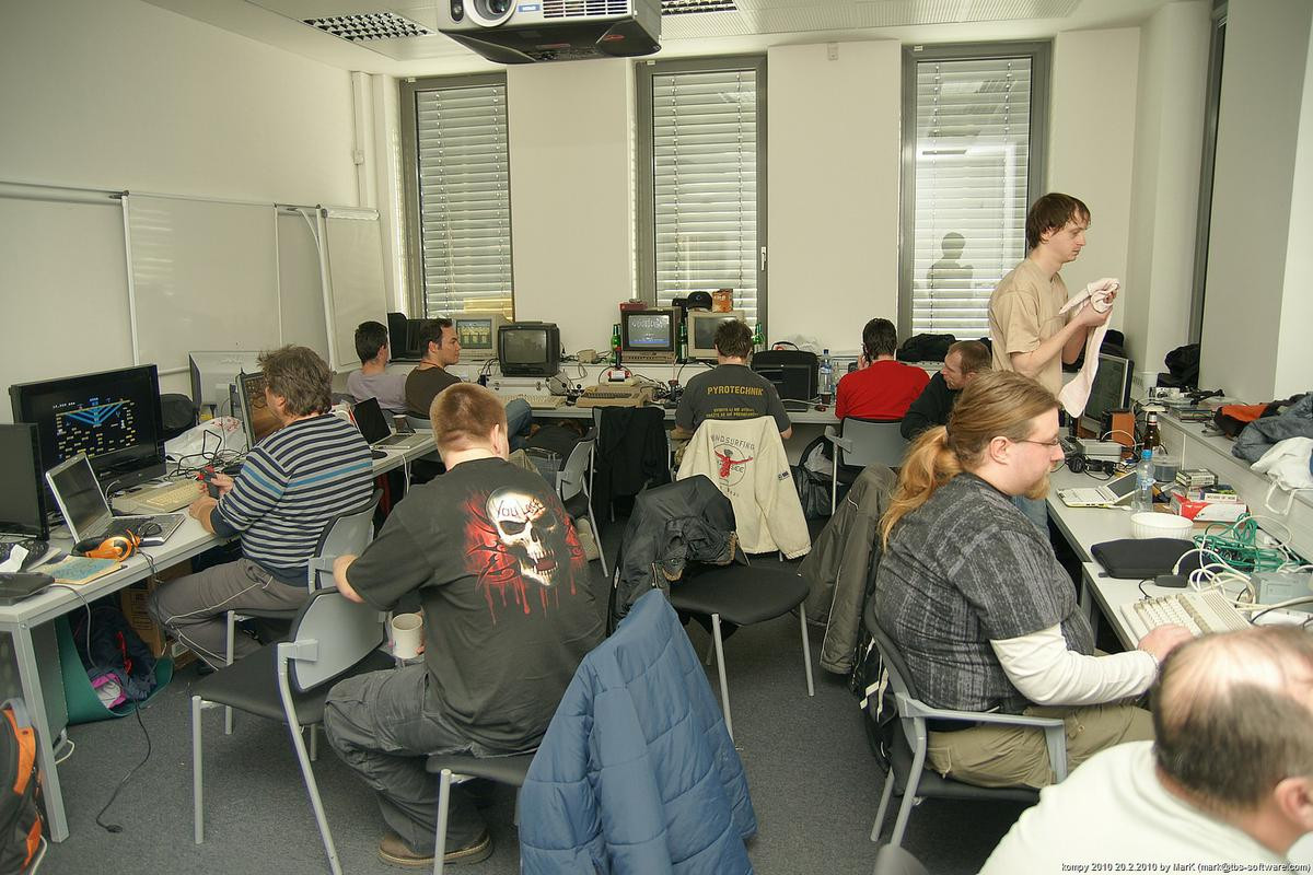 O víkendu proběhla na pražském Chodově nyní už dá se snad říci tradiční zimní akce s názvem Kompy. Je to setkání zaměřené implicitně na hraní her pro Amigu a MAME, ale i další platformy. Tentokrát se nás sešlo asi 30 plus minus pár návštěvníků a kromě Amig a emulovaných arcade automatů se hrálo také třeba na osmibitových Commodorech 64 a Atari 800XE. K dispozici byly dva projektory s plátnem a obří plasmová obrazovka.