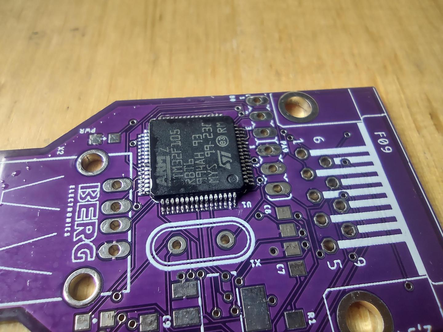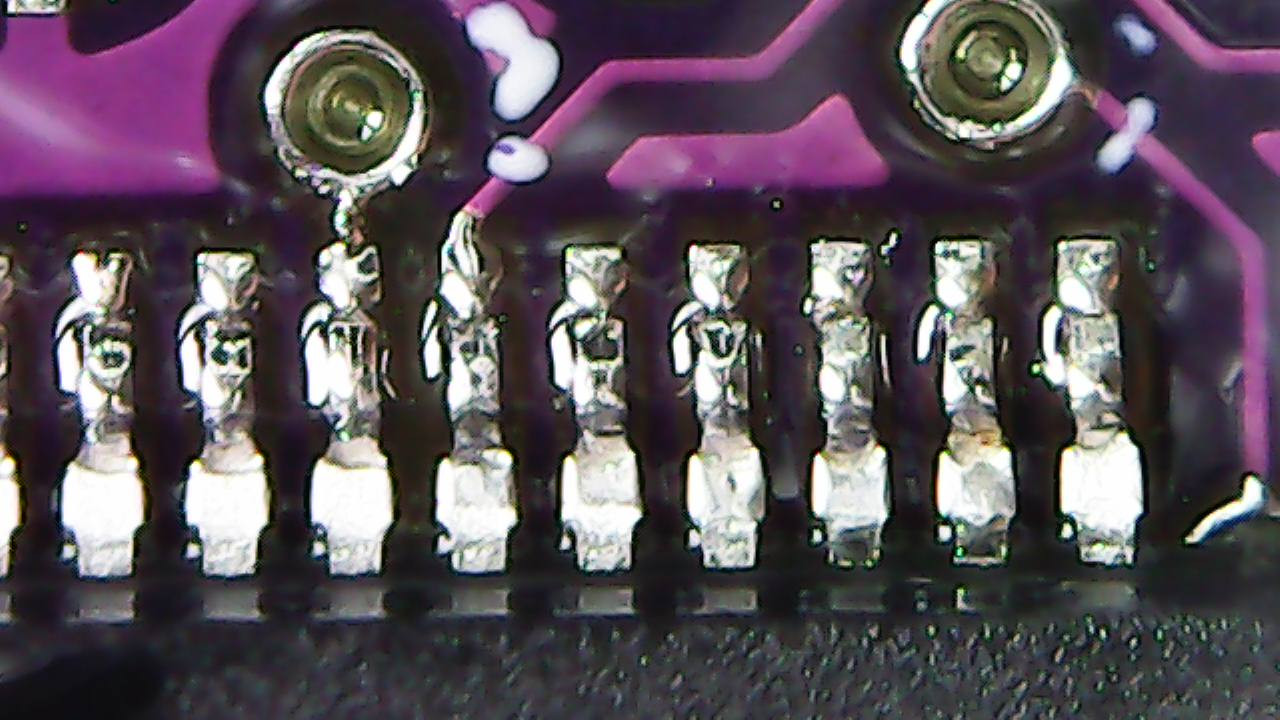 No, to první pájení horkým vzduchem bylo fiasko. Připájelo se to nakřivo a 3/4 pinu vedle. Sundat to bylo horší. Takže na fotce to teď vypadá pěkně, ale vidíš výsledek hodinového mordu.