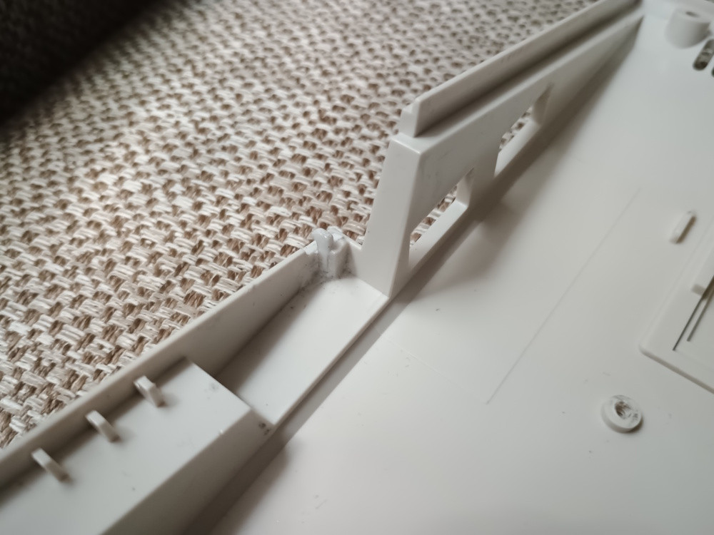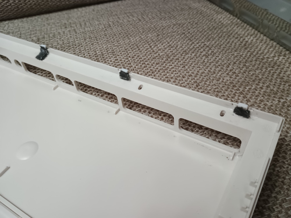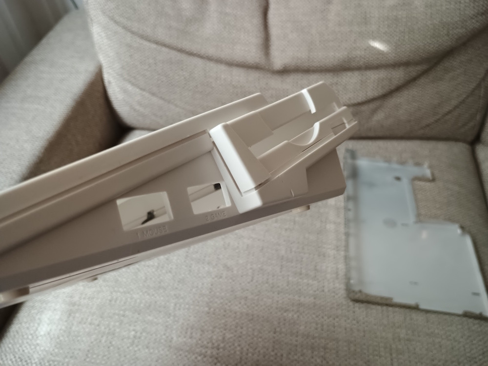 Koupil sem na opravu toto a z jedné ťapky navíc udělal ten háček u disketovky. Na protější straně je zbytečné ho dělat, je tam šroub. Lepil sem dvousložkovím epoxidem a sekundovým lepidlem. Sekundové lepidlo by asi stačilo. Ono ten case plast u Amig a Atari ST pěkně naleptá.