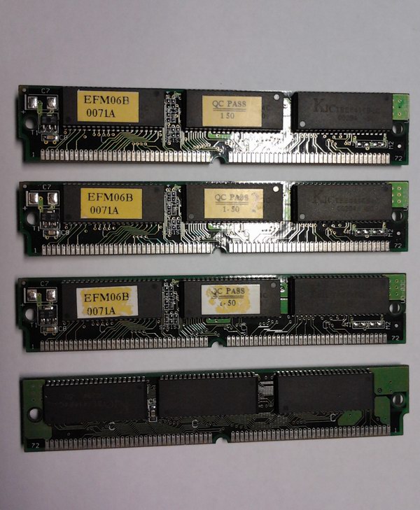 Ta s 4Mx4 cipy se identifikovala spravne jako 32MB, ale SIMMka s cipy 8Mx32 cipy se hlasila jen jako 16MB.