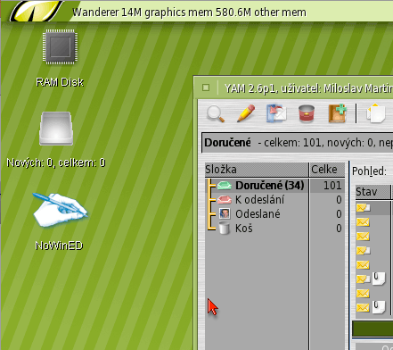 Musím říci, že tato funkce mi opravdu chyběla. Není větší opruz, než když má člověk otevřeno více oken a musí se nimi prohrabávat, přecvakávat nahoru a dolu nebo je strkat do stran, aby se dostak k tomu které chtěl. Takhle dáte ikonifikovat a na ploše si vyberu co potřebuji.