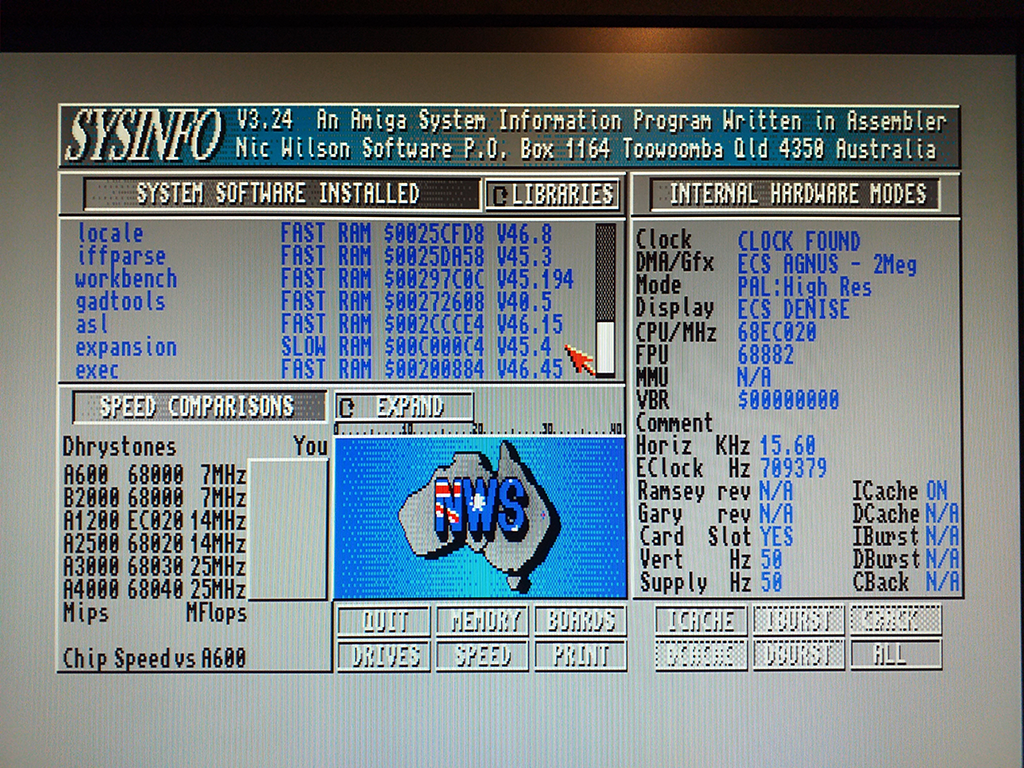 S popisanym problemom som si vystaval takuto kombinaciu HW spolu s kartami od Lotharek-a. A naozaj po dlhsom badani sa zavada prejavila aj na mojom pracovnom stole. Zistil som, ze nova expansion.library je citiliva na Cache, ta je po zapnuti pocitaca presunuta s ROM do SlowRAM. Tato cas pamati je vsak len psuedo SlowRAM a CPU do tejto casti pristupuje 32 bitovo a vyuzitim Cache.