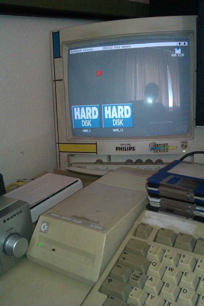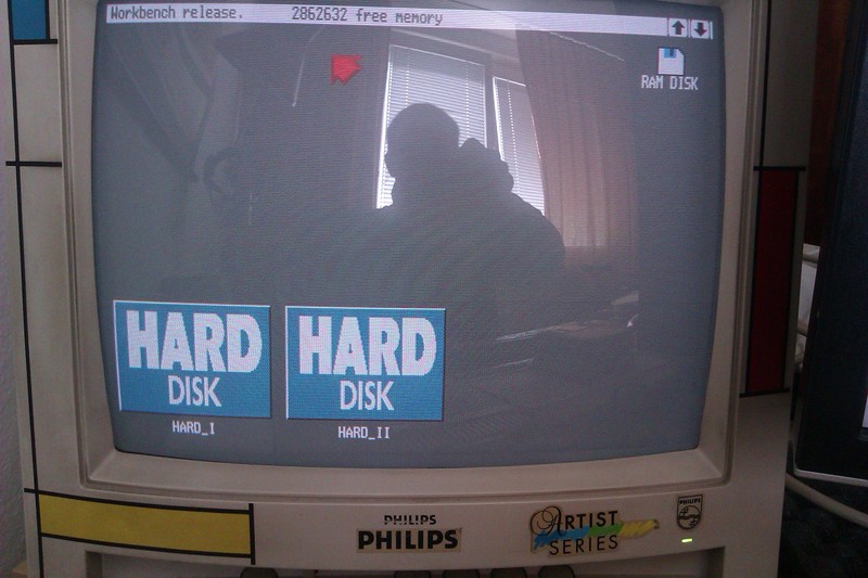 Tak chlapi, je to doma. Prve spustenie. Disk zacal seekovat, krasny zvuk. Vsetko nabehlo v poriadku. Sede pozadie workbenchu, spomienky.
