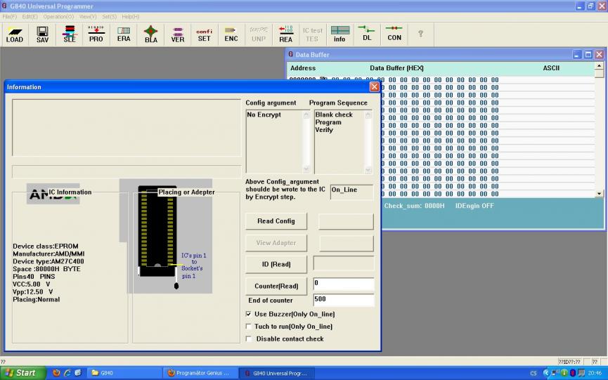 Tak jsem si po dlouhé době zase udělal radost a pořídil si konečně programátor "všehomožného". Můj výběr padl na Genius G840, jelikož umí většinu čipů, které se používají na biosy v ntb a MB, což bude jeho primární použití na našem servisu, ale taky samozřejmě epromky pro kickstarty, že...