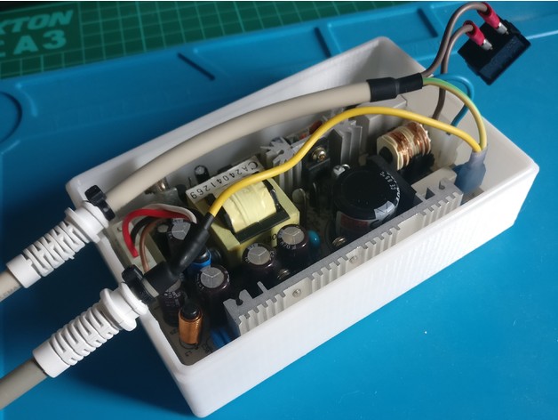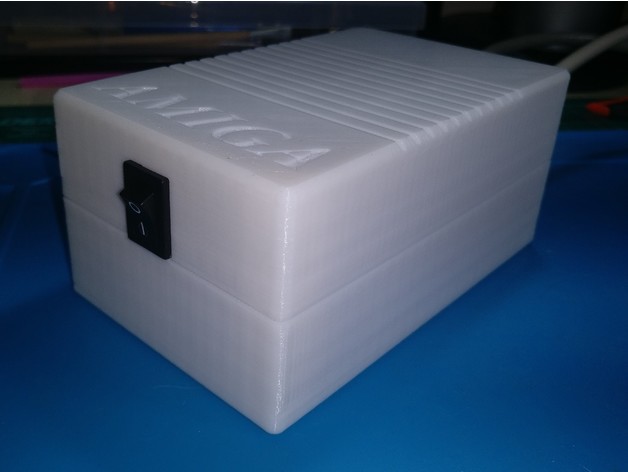This case will fit a Mean Well PT-45B or PT-65B power supply. Both the cable entry points are on the same side of the PSU making it a bit neater when sat on top of a desk. Power switch used measures 19.5x13mm. It should be easy to find one that fits, just a search for rocker switch and check the cut-out requirements).For the cable strain reliefs, the ones I used can usually be found on eBay/AliExpress (6.5mm inner hole size). You can see the one I used in the photos. Two different versions of the top cover are included. One with the Amiga text and one without.All the screw holes are countersunk so can be printed without supports. Needs 4x M3 screws (I used 12mm)UPDATE Step files have been added as requested. If you modify them into anything useful, please add them as a remix for others to use.