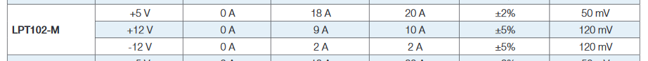 • Output (nominal): 5V/4.0A, 12V/2.0A, -12V/0.50A.
