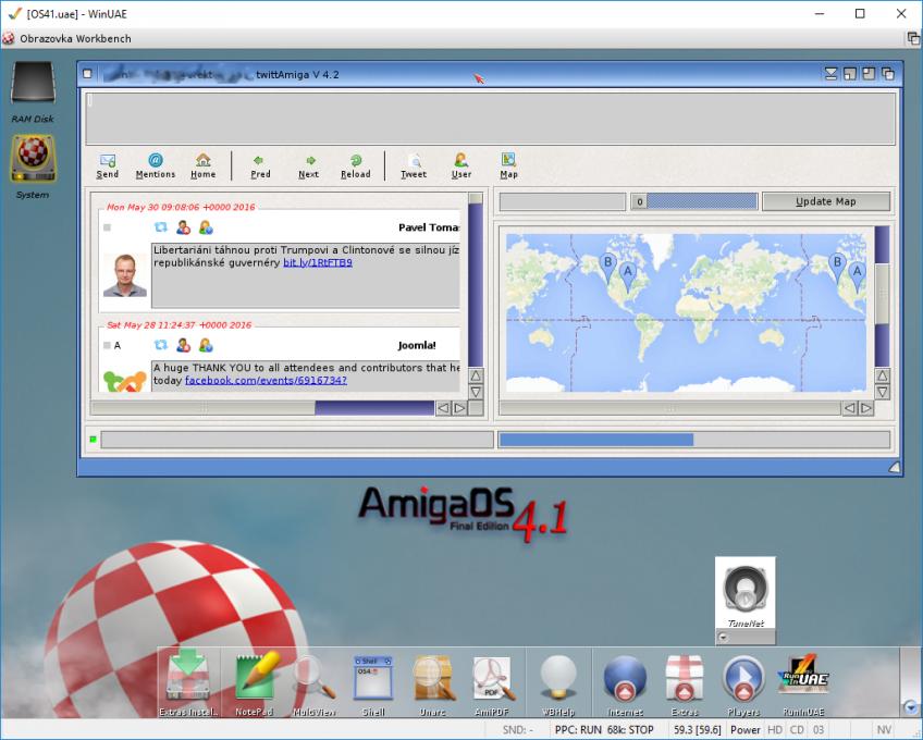 Ono to asi není úplná novinka, ale na Amize lze provozovat Twitter klient. Verze jsou pro OS3.x, 4.X a MorphOS. Zkusil jsem pod OS4.1 a funguje.