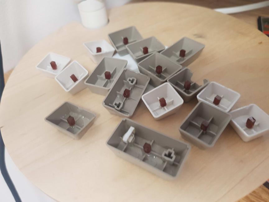 no a pak následovalo modelování, 3d tisk předělávání, testování (několikrát dokola) a pak lepení vnitřku kláves