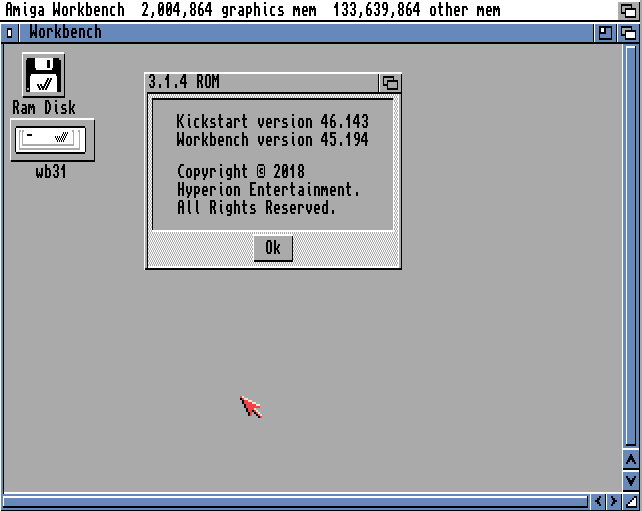 Kick 3.1 ---> Kickstart version 46.143 ---> 2,004MB CHIP RAM