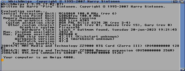 Dami si chtěl poměřovat pindíky . Testoval jsem to na Amiga OS 3.9 BB2, 68060.library v47.2. Bohužel nevím, jakou verzi FW mám v kartě. Ale údajně poslední,možná 2022-12-22, pokud letos nevyšla další.