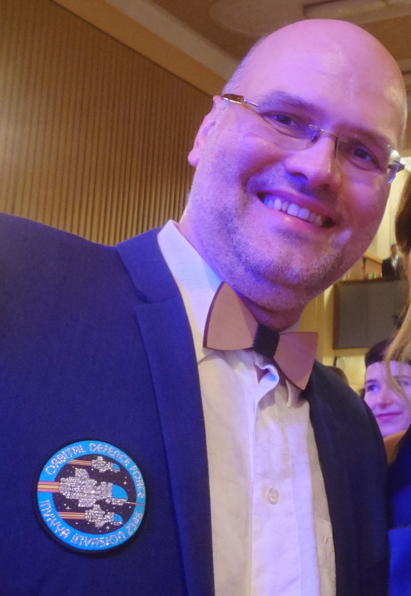 A včera jsem hned na plese zužitkoval tu nášivku, coby nováček z ORBITAL DEFENCE FORCE ve vycházkovej uniformě. Měla úspěch, tak jsem tomu dělal celý večer reklamu, hodně lidí se ptalo