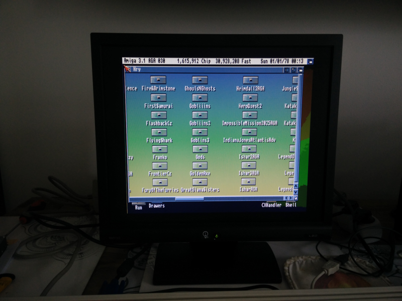 Kedysi som tu daroval podobné V173, bez Scandoublera 15 kHz taktiež nedávali. Tento monitor na Amige funguje najskôr kvôli tej redukcii (buffered RGB/VGA adapter?).