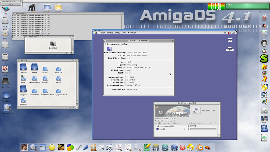 Konečně se mi podařilo připravit filedisk s MacOS8. Nejlíp však funguje jen OS4 BasiliskII.