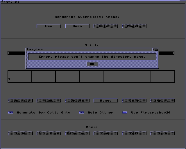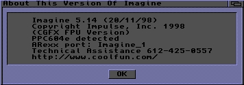 Zkoušel jsem dnes ppc verzi Imagine (5.14), ale nedaří se mi ji dobře rozchodit. Imagine sice spustím, podaří se mi i vytvořit nový prázdný projekt, ale už ne subprojekt. Hlásí mi to něco o tom abych neměnil název adresáře. Preference jsem si prošel, porovnal s funkční 68k verzí 5.0, ale nic o mapování adresářů jsem nenašel. Pokud se pokusím otevřít již vytvořený projekt v jiné verzi, hlásí mi to to samé.